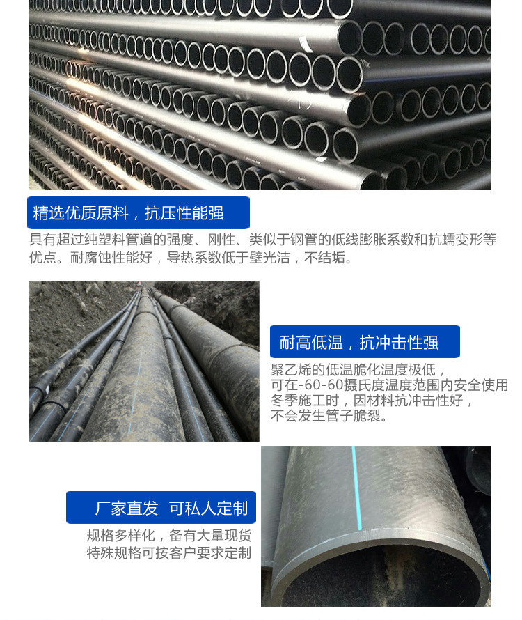 可以通過改變鋼絲直徑、網(wǎng)間距、塑料層厚度、塑料和種類來調(diào)整產(chǎn)品的結(jié)構(gòu)與性能,以滿足不同的耐壓、耐溫、防腐要求。